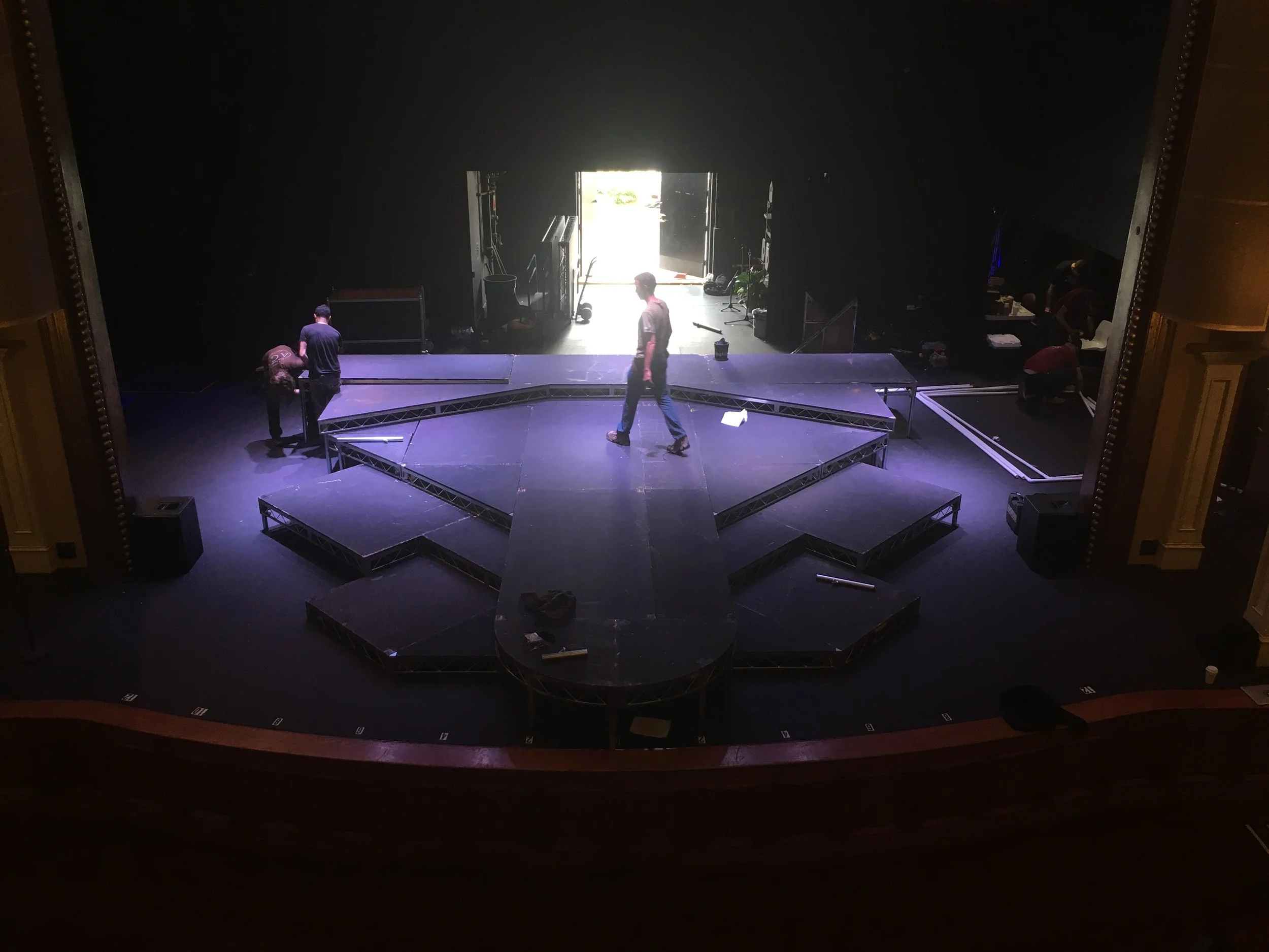 The planning time for this was pretty quick. The biggest challenged was that I had to puzzle together existing rentable steel deck platforms and create the same shape of the custom made stage from the movie.